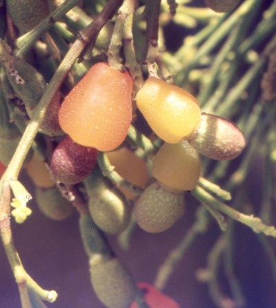 Name. Exocarpos: Greek exo outside; carpos fruit, the seed appears to be outside the fruit.